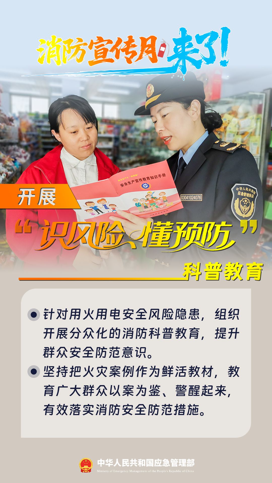今年11月9日是第34个全国消防日。国务院安委会办公室、国家消防救援局定于11月份在全国开展消防宣传月活动,主题是“全民消防、生命至上——安全用火用电”。为做好消防宣传月各项工作,按照国务院安委会办公室、国家消防救援局通知要求,各地将组织开展“安全用火用电”系列活动。