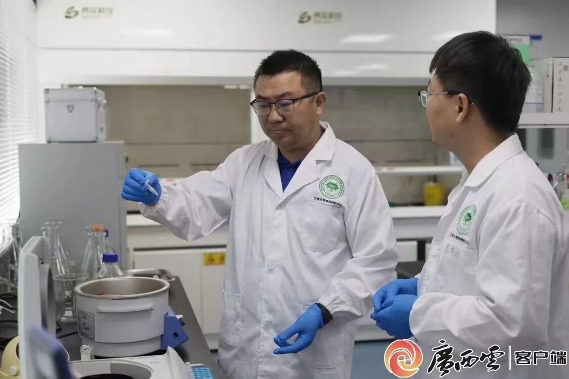 张积森带着团队成员在进行实验。广西云-广西日报记者付玮烨 顾醒航 摄
